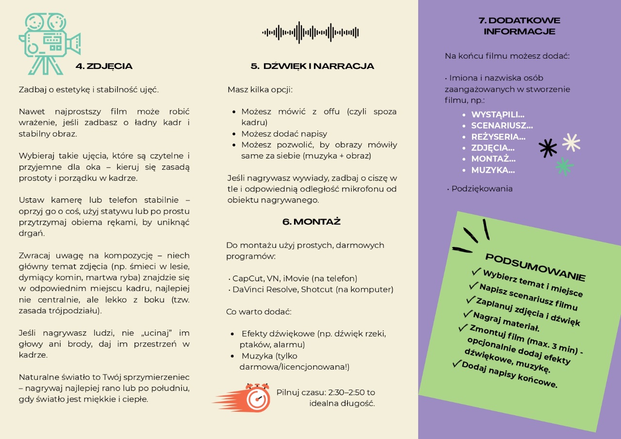 W kilkuosobowych zespołach (3-5 osób) nagrywacie krótki film (max 5 minut), w którym pokażecie: