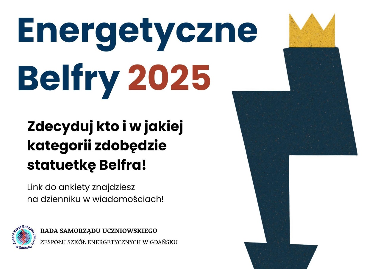 UCZNIOWIE ZSE, przypominamy o oddawaniu swoich głosów na Energetyczne Belfry 2025. Termin głosowania upływa 30 września 2025. Link do głosowania na poczcie GPE. Rada Samorządu Uczniowskiego ZSE
