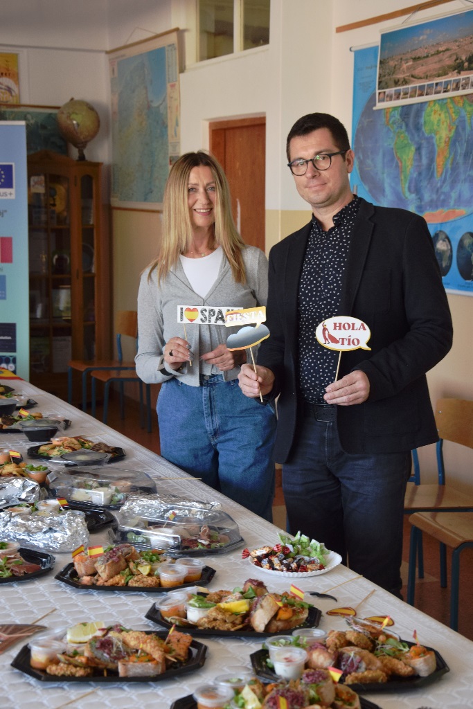 Po prezentacjach na auli był czas na wspominki kulinarne - nie zabrakło poczęstunku, zdominowanego przez smaki z Hiszpanii i Włoch a więc krajów partnerskich. Serdecznie gratulujemy uczestnictwa w projekcie.