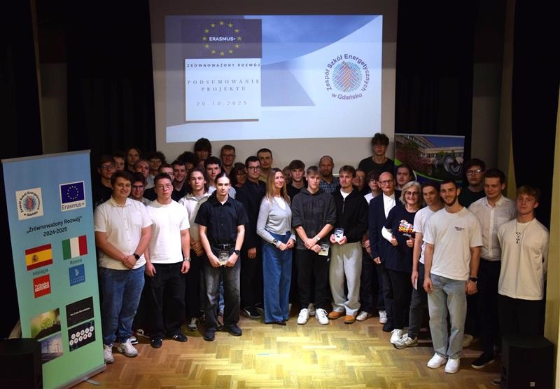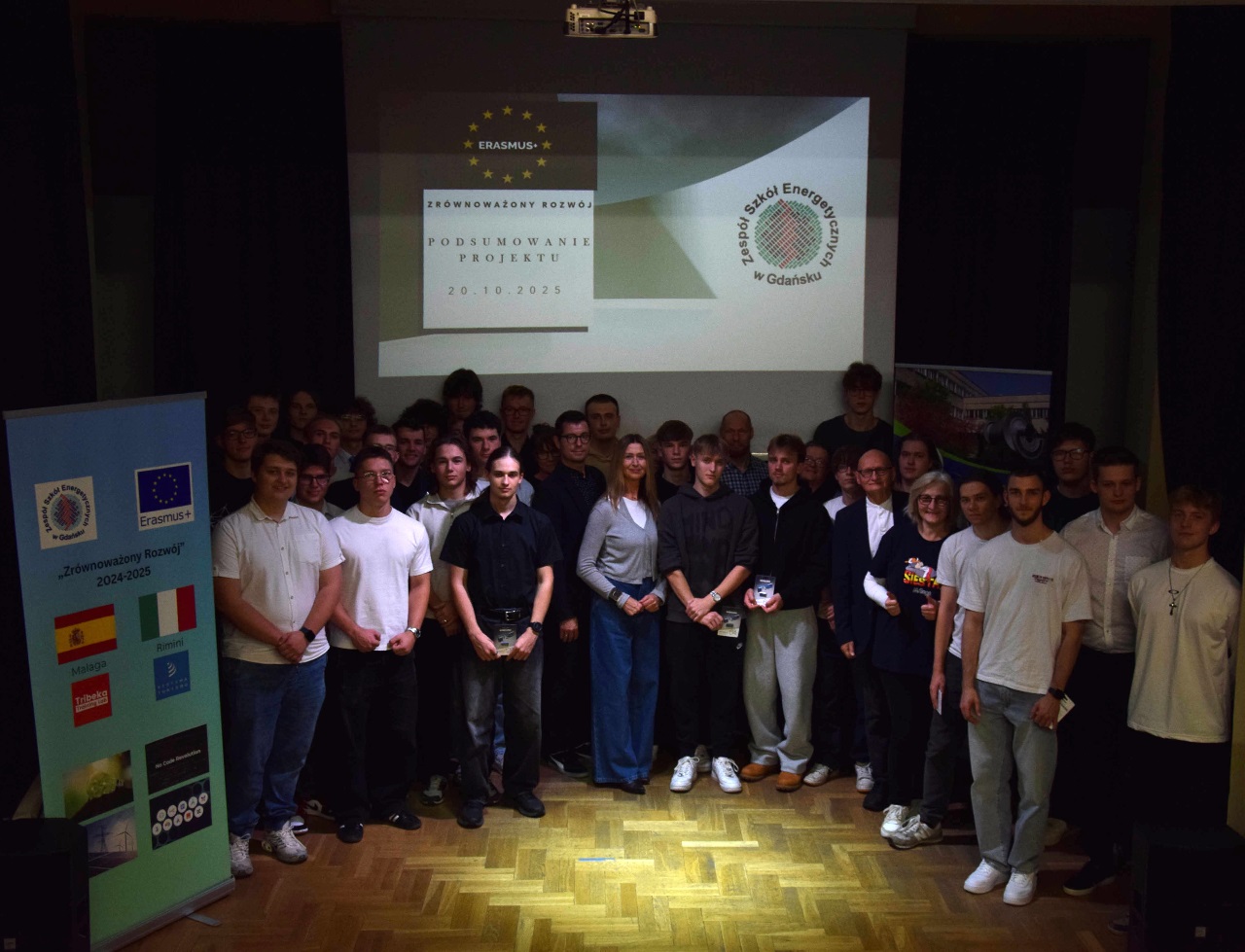 20 października 2025 na auli Zespołu Szkół Energetycznych w Gdańsku odbyło się spotkanie podsumowujące projekt ERASMUS+ pn. Zrównoważony Rozwój.