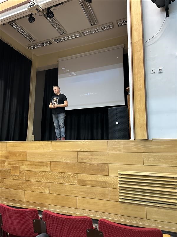 9 października 2025 roku w auli szkolnej odbyło się spotkanie autorskie z panem Romanem Ziębą dotyczące książki jego autorstwa - "Krzyż Ameryki". Uczniowie mieli szansę spojrzeć na świat z pryzmatu pieszych wędrówek po różnych krajach świata. Nazwa książki nawiązuje do pokonania trasy z północy na południe oraz ze wschodu na zachód Stanów Zjednoczonych.