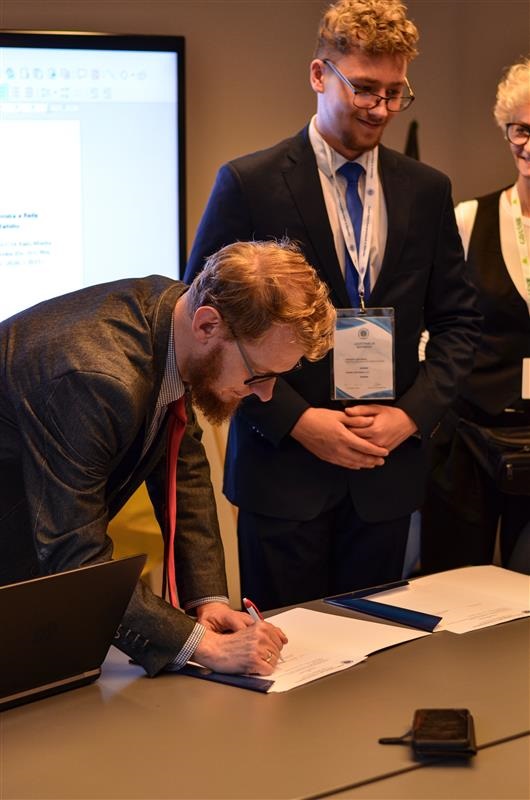 Jednym z najważniejszych momentów sesji było uroczyste przegłosowanie uchwały w sprawie porozumienia o współpracy pomiędzy RSU ZSE a Radą Dzielnicy Młyniska. 🖋️🤝 Dokument został podpisany przez Przewodniczącego RSU Bartosza Zabrockiego oraz Przewodniczącego Rady Dzielnicy Młyniska Tomasza Larczyńskiego i stanowi ważny krok w budowaniu współpracy młodzieży z samorządem dzielnicowym.
