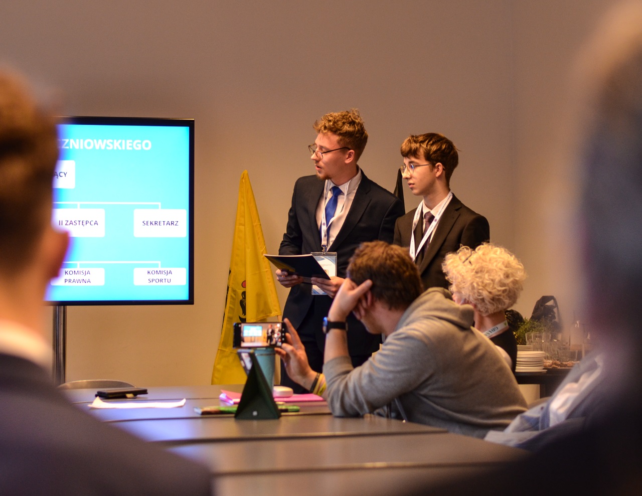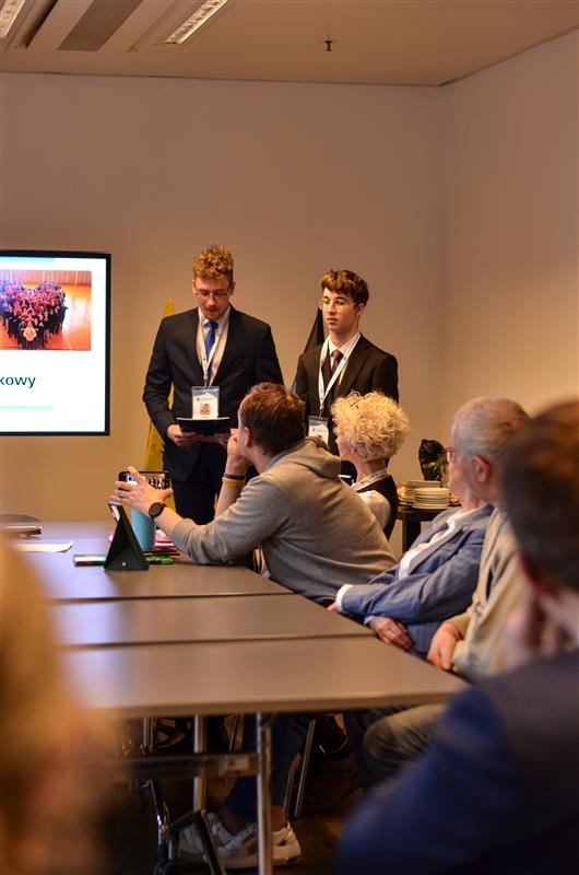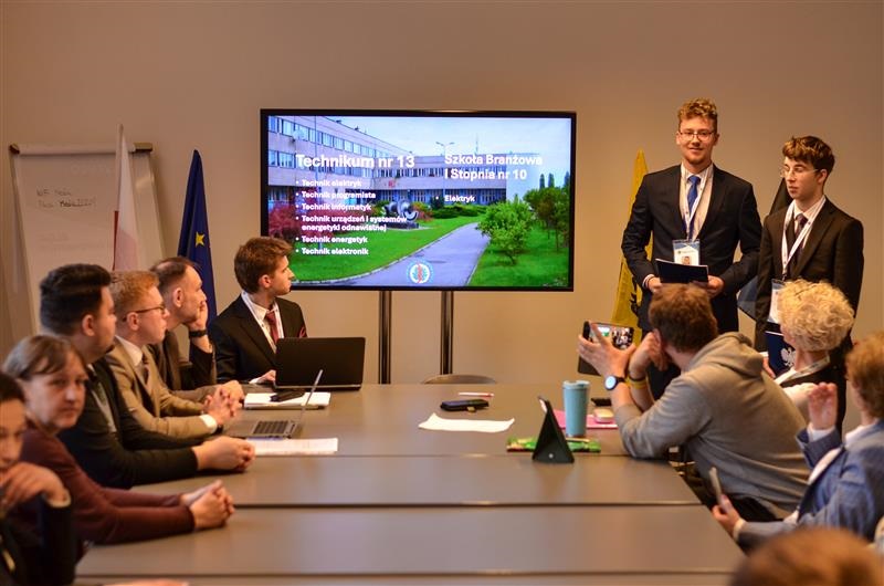 Podczas spotkania Przewodniczący RSU Bartosz Zabrocki oraz II Zastępca Przewodniczącego Dawid Brzeski przedstawili prezentację dotyczącą Zespołu Szkół Energetycznych oraz działalności Rady Samorządu Uczniowskiego. 📊✨ Zaprezentowane zostały najważniejsze inicjatywy uczniów oraz działania samorządu szkolnego na rzecz społeczności szkolnej i lokalnej.