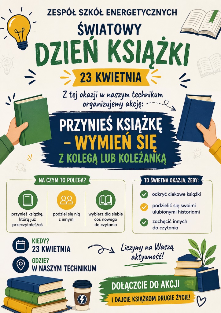 Światowy Dzień Książki - Zespół Szkół Energetycznych (Technikum nr 13, Branżowa Szkoła I stopnia nr 10)