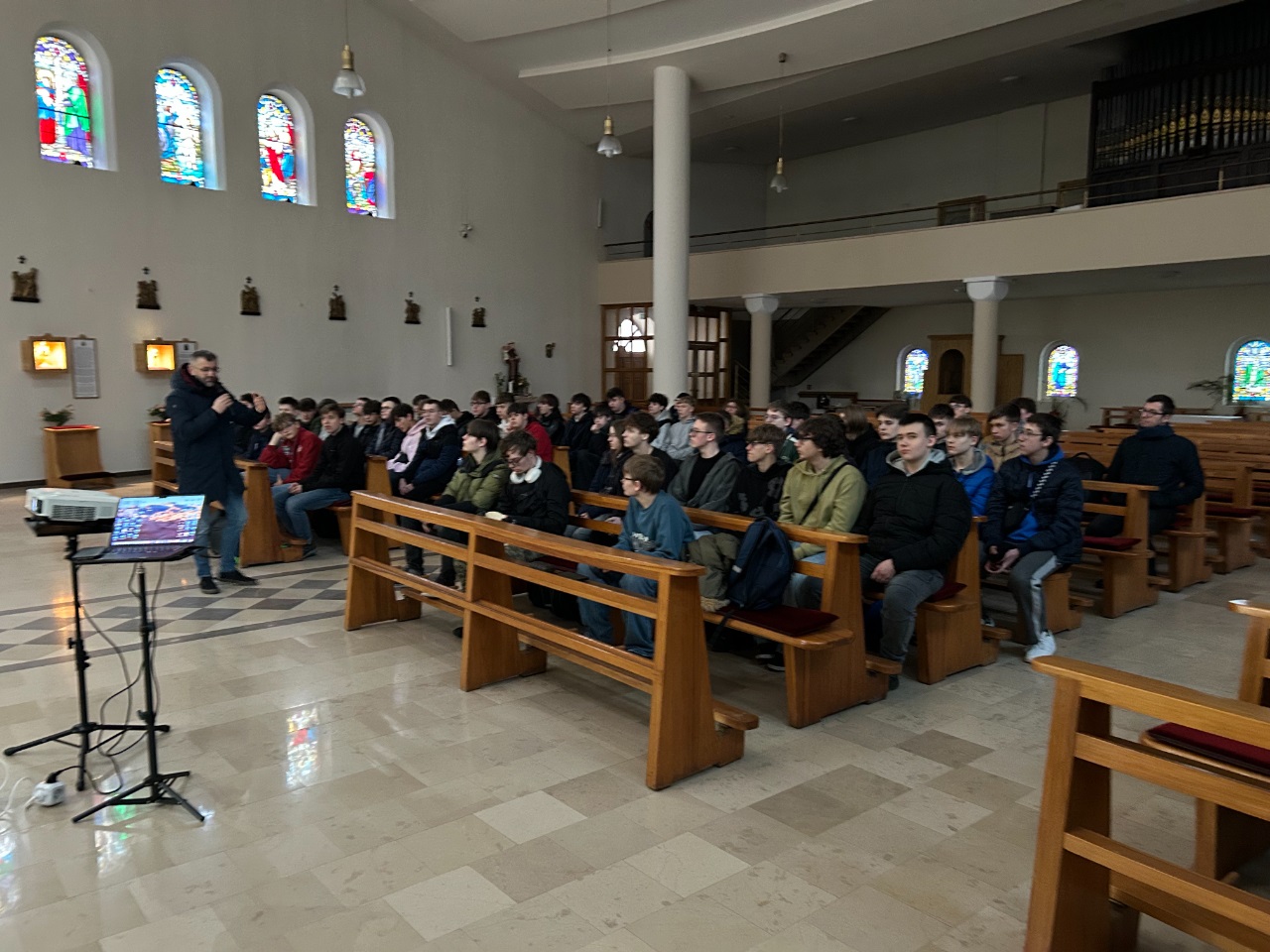 Tegoroczne rekolekcje głosił ks. proboszcz Andrzej Bulczak, prowadząc nas przez czas modlitwy, zatrzymania i pogłębionej refleksji nad własnym życiem i wiarą. Gościem specjalnym był Dobromir Makowski z Rapedagogiki, który w poruszających konferencjach podzielił się swoim świadectwem i zachęcił młodych do odważnych, dobrych wyborów.