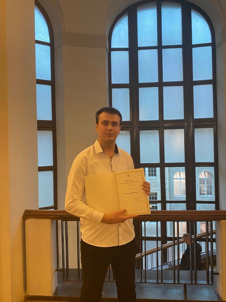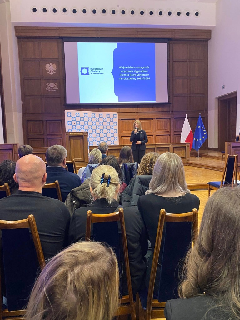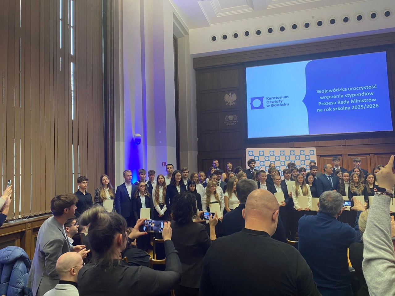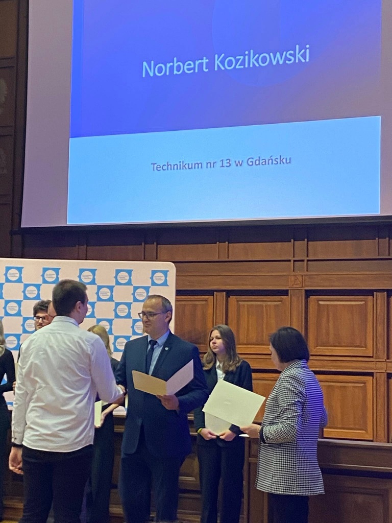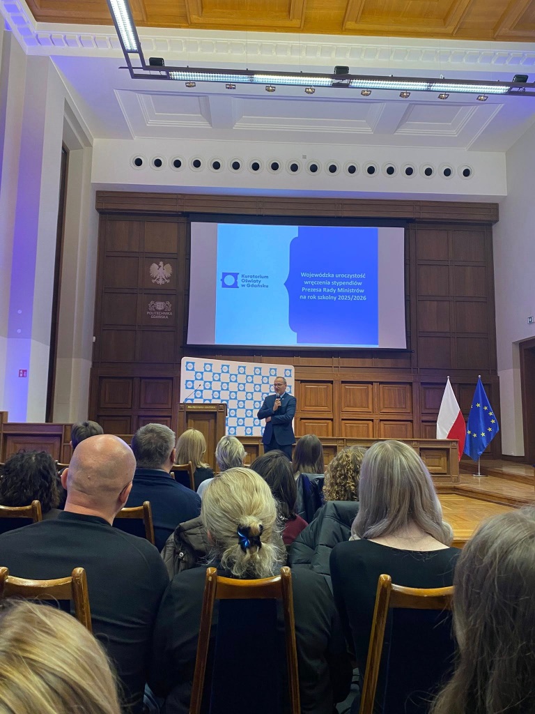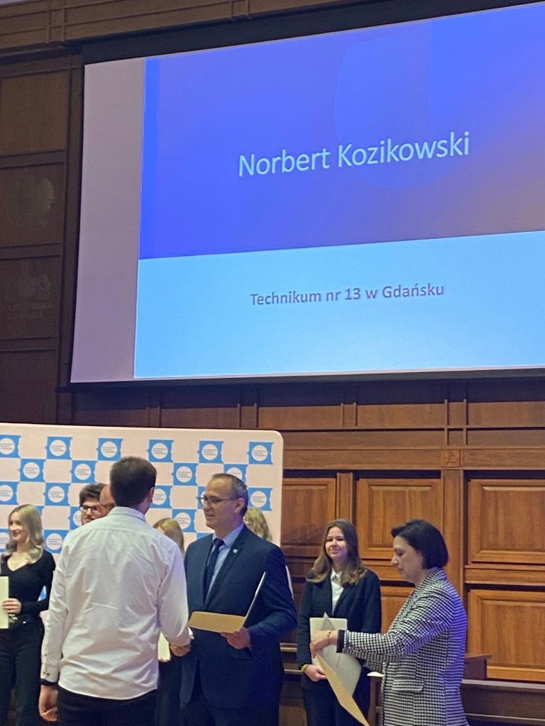 Uroczystość wręczenia dyplomów stypendystom Prezesa Rady Ministrów na rok szkolny 2025/2026. Technikum nr 13 Zespółu Szkół Energetycznych reprezentował uczeń klasy V K Norbert Kozikowski. Gratulujemy Norbertowi otrzymanego stypendium, które otrzymał w dniu swoich urodzin.