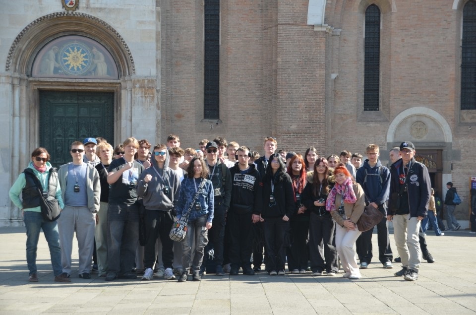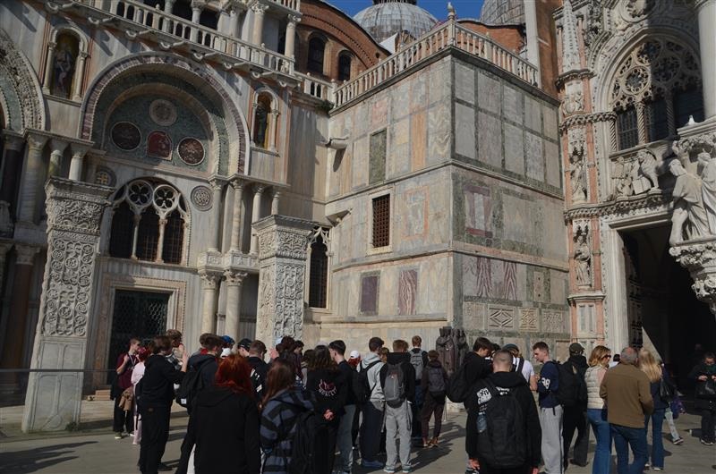To już ostatni dzień ciekawej wycieczki do Włoch. Tego dnia uczniowie zwiedzali Wenecję. Podróż rozpoczęła się od przepłynięcia statkiem przez lagunę Wenecką, obszar wodny wpisany na listę dziedzictwa UNESCO. Płynąc statkiem przepływaliśmy wzdłuż malowniczo położonych wysp Lido i Palestrino, które są częścią laguny Weneckiej. Po przybyciu uczniowie, dzięki Pani przewodnik, mogli dowiedzieć się o historii Wenecji. Głównym punktem zwiedzania był plac św. Marka, który znajduje się w najstarszej części miasta. Przy placu znajduje się bazylika św. Marka oraz dzwonnica św. Marka, z której rozpościera się przepiękny widok na Wenecję (jednocześnie jest to jedyne miejsce, z którego nie widać kanałów i jedyna wieża w Wenecji stojąca pionowo). Wenecja, z racji, że jest zbudowana na wodzie, poprzecinana jest kanałami a także wąskimi uliczkami. Wcześniej służyły one jako kanały transportowe a obecnie służą jako atrakcja turystyczna dla małych statków oraz gondolierów. Wenecja pożegnała nas pięknym zachodem słońca.
