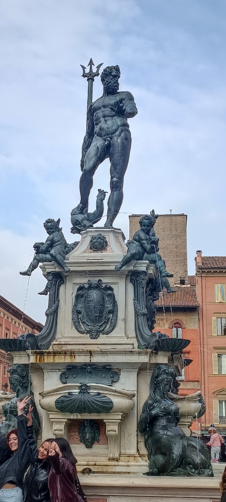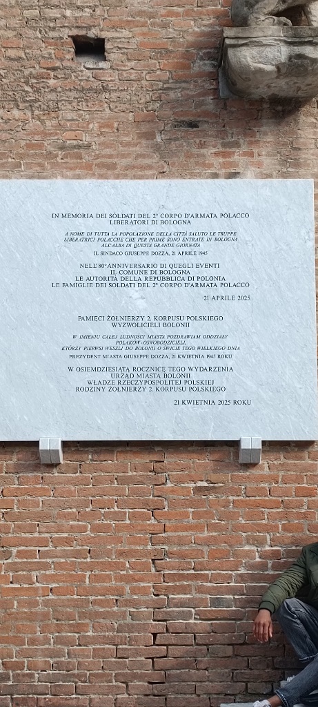 Drugi dzień wycieczki do Włoch minął pod znakiem Bolonii. Bolonia to, przede wszystkim, miasto uniwersyteckie gdzie znajduje się siedziba najstarszego uniwersytetu w Europie, który złożony został w 1088 roku. Bolonia słynie rownież z kuchni - zwłaszcza takich specjałów jak tagliatelle al ragù, tortellini i mortadella. Podczas spaceru po mieście Pani przewodnik opowiadała o historii miasta, jak się zmieniało, kto nim rządził. Na Piazza del Nettuno znajduje sie, wzniesiona w XVI w. na cześć papieża Piusa IV, fontanna Neptuna. Fontanna oglądana z róznych perspektyw pozwala dostrzec różne detale - dla dociekliwych na zdjęciu. Ciekawostką są wieże budowane przez zamożnych mieszczan - im wyższa wieża tym bogatszy był mieszczanin. Większość wież nie dotrwała do dzisiejszych czasów. W Bolonii znalazł się również i polski akcent (zdjęcie z tablicą).